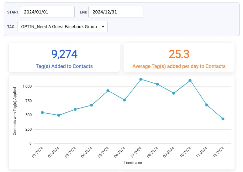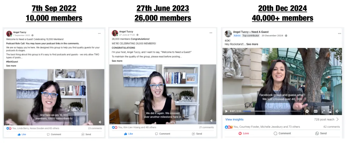 In Sep 2022, our Need a Guest group had 10,000 members. By 20th December 2024 we had grown this one group we own to over 40,000 members. With an average of 76% of members giving us their email address and 30% giving us their phone numbers.
