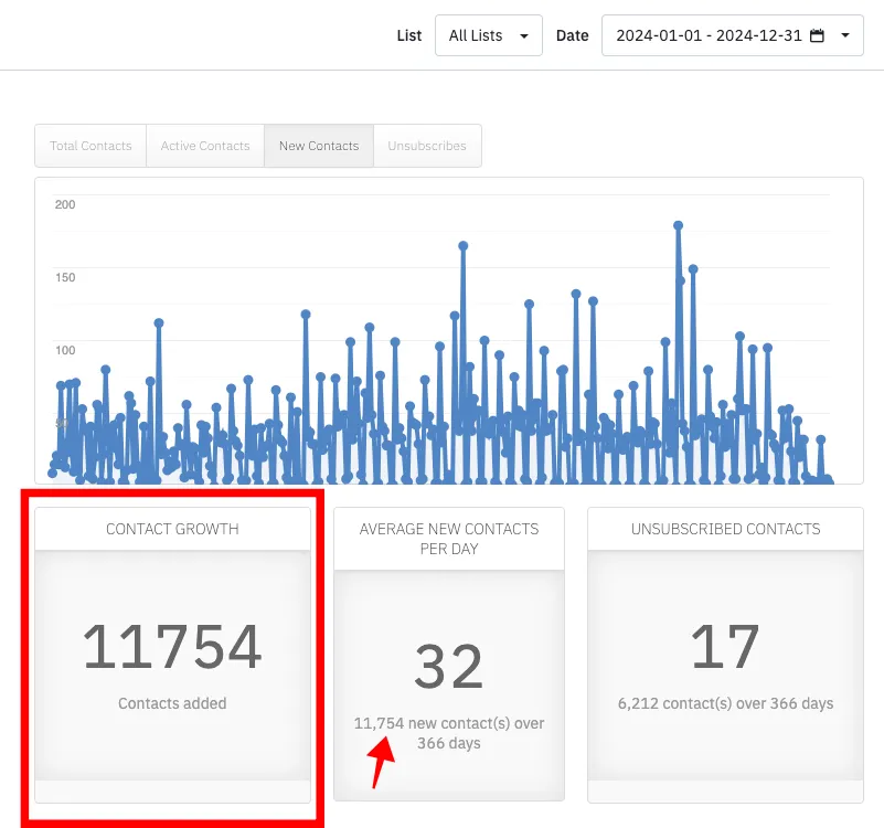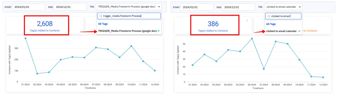 2,994 unique leads clicked through from email to book a call in 2024. (From our list of 13,000+ this was about a 22% total clickthrough rate for the year.)