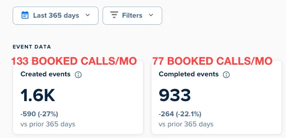 In 2024 we were able to increase our booked calls by 224% (pretty dramatic). For the year, we booked over 1,600+ calls, with 933+ showed up live calls.