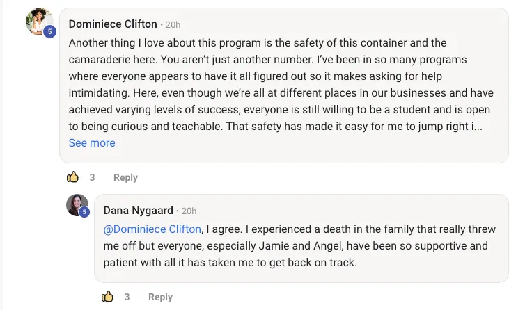 The things that Angel and Jamie are teaching, they're absolutely spot on. They're constantly redirecting me back to what works, because I get over here in the weeds on something and they're like "Hey Dana, go back to doing what works."