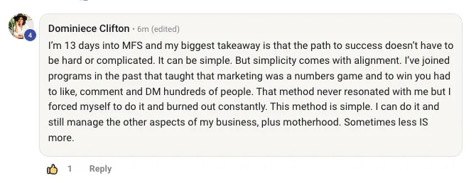 Since investing in MFS, I've enrolled five new clients — six total for June. I realised I love the framework here. It's all about freedom.